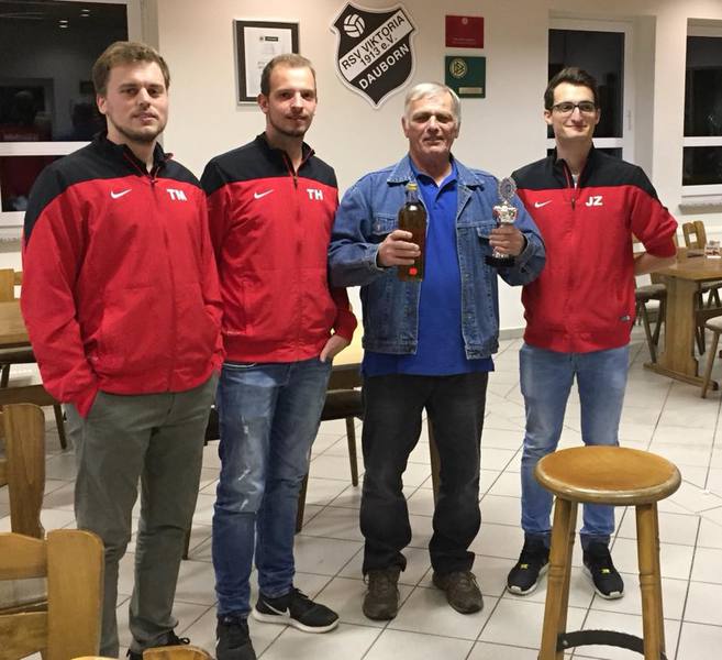 Heimann aus Dauborn. Für die ersten Drei gab es jeweils einen Geldpreis und der Sieger erhielt zusätzlich einen schönen Pokal. Ebenfalls einen tollen Pokal erhielt der „Jule-König“ des Abends. Mit 31