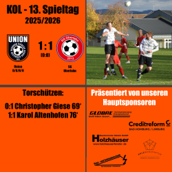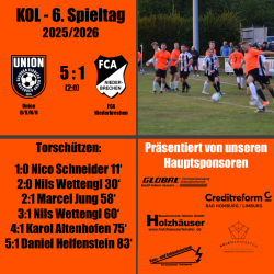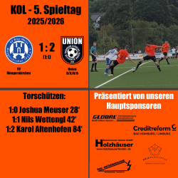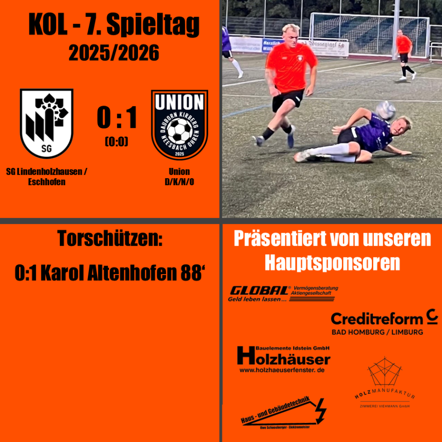 Zunächst geht ein großes Dankeschön an die SG Lindenholzhausen/Eschhofen, die sehr kurzfristig als Testspiel- Gegner zugesagt hatten. Obwohl sich beide Teams mitten in der Vorbereitung zur neuen Saison befinden und es „nur“ ein Testspiel war, fand dies vor einer außergewöhnlich großen Zuschauerkulisse statt. Die neu gegründete Union und der Aufsteiger in die KOL belohnten ihre Anhänger mit einer ansehnlichen Partie, bei der die Gastgeber etwas mehr Ballbesitz und mehr Offensivaktionen besaßen. Die erste „Top-Möglichkeit“ hatte Youngster und Neuzugang Raul da Silva, der aber im 1vs.1 am starken Christian Schmitt im SG Tor scheiterte. Auch beim 16 Meter Kracher von Cedric Heckelmann war Schmitt kurze Zeit später zur Stelle. Auf der Gegenseite sorgte immer wieder der agile Philipp Wünsche für Gefahr im Union-16er. So hätte auch er die Führung erzielen können, doch bei einem Drehschuss aus kurzer Distanz war Yannik Großmann aufmerksam und konnte klären. Kurz vor der Halbzeitpause war es Felix Wind, der noch einmal Schmitt zu einer tollen Parade zwang. In der 2. Halbzeit ließ das Tempo etwas nach, aber beide Teams versuchten dennoch alles, um die Zuschauer mit Toren zu belohnen. Das erste Ausrufezeichen setzte Philipp Wünsche mit einem Fernschuss, der aber an das Aluminium klatscht. So auch auf der Gegenseite bei einem Schuss von Erdonit Syla. Kurz vor Ende hatte ein weiterer Youngster und Neuzugang auf Seiten der Union, Karol Altenhofen, noch die Möglichkeit zum Treffer des Tages, aber am Ende blieb es bei einem leistungsgerechten Unentschieden. Wie sagte ein Zuschauer am Ende: „Ein guter Test, aber es war so ein typisches 0:0 Spiel“. Schiedsrichter Harald Mersdorf hatte mit diesem fairen Testspiel keinerlei Probleme und gewährte ausreichend Trinkpausen.