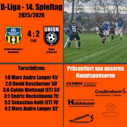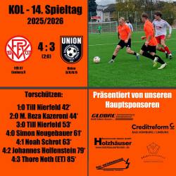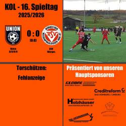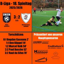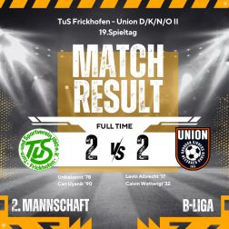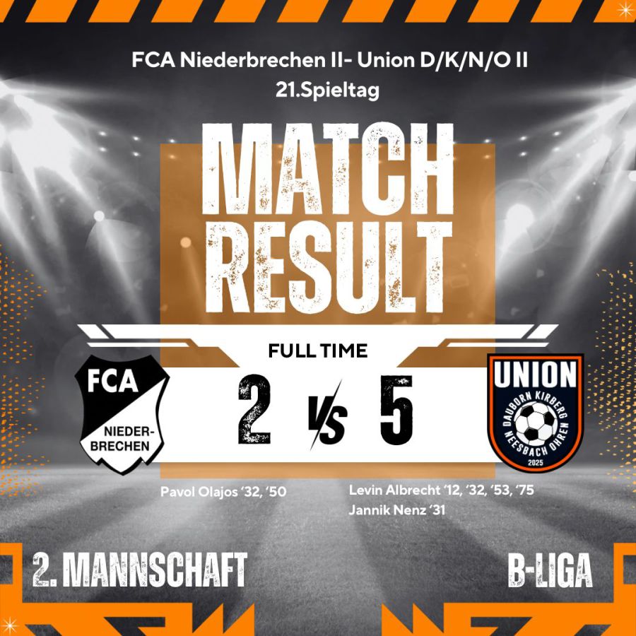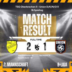 Ausgleich reicht es nicht mehr. Aufgrund der Leistungssteigerung in der 2. Halbzeit ein knapper, aber verdienter Sieg der Union-Reserve. (D.B.)